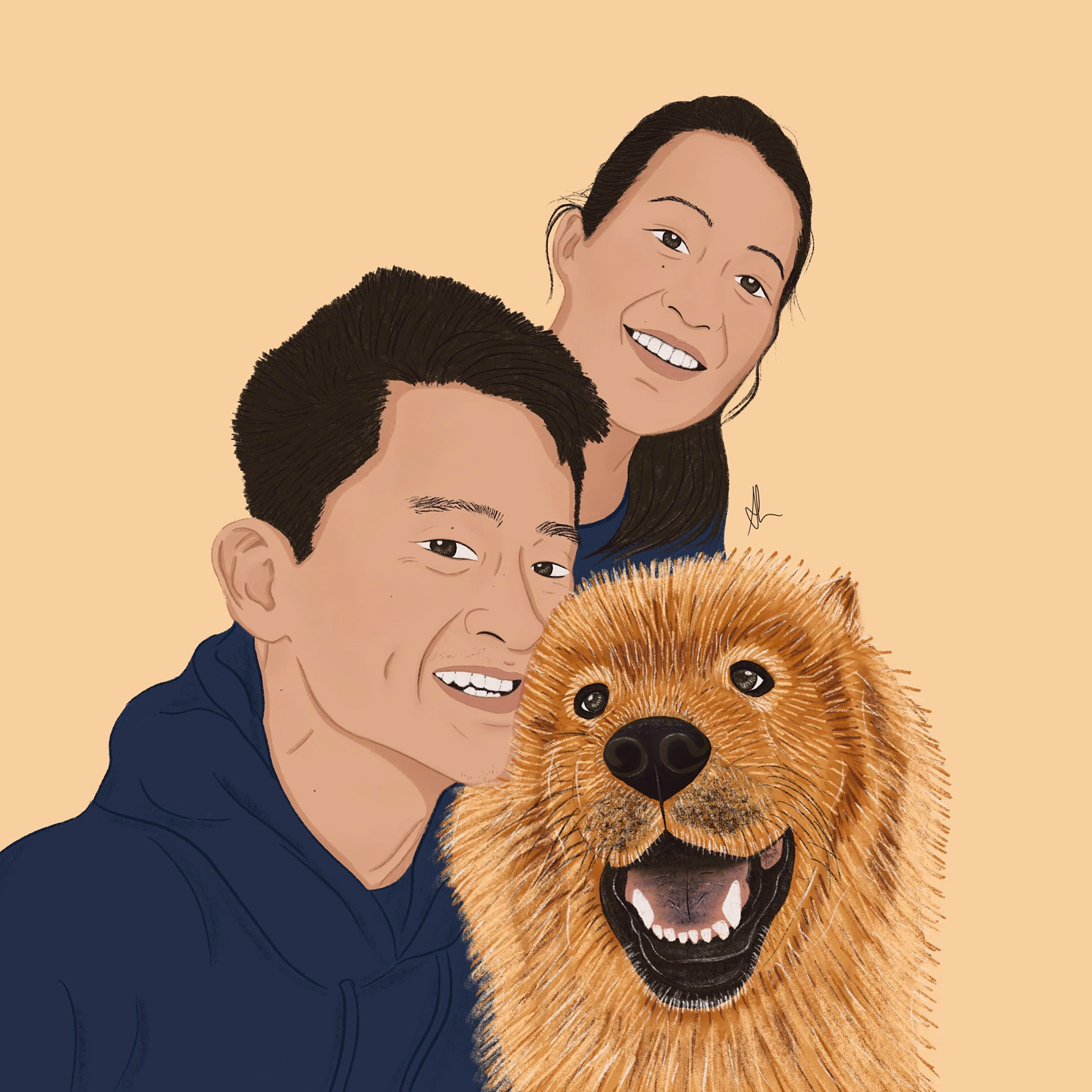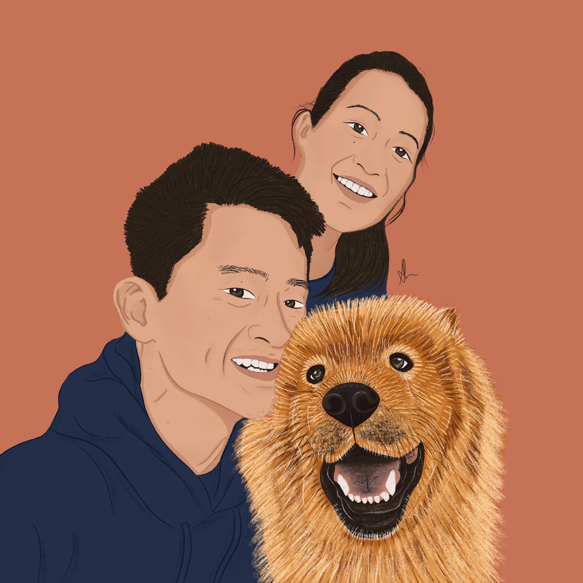 Family portrait commissioned by Bianca of her, her husband and their dog, Hachi as a housewarming gift.