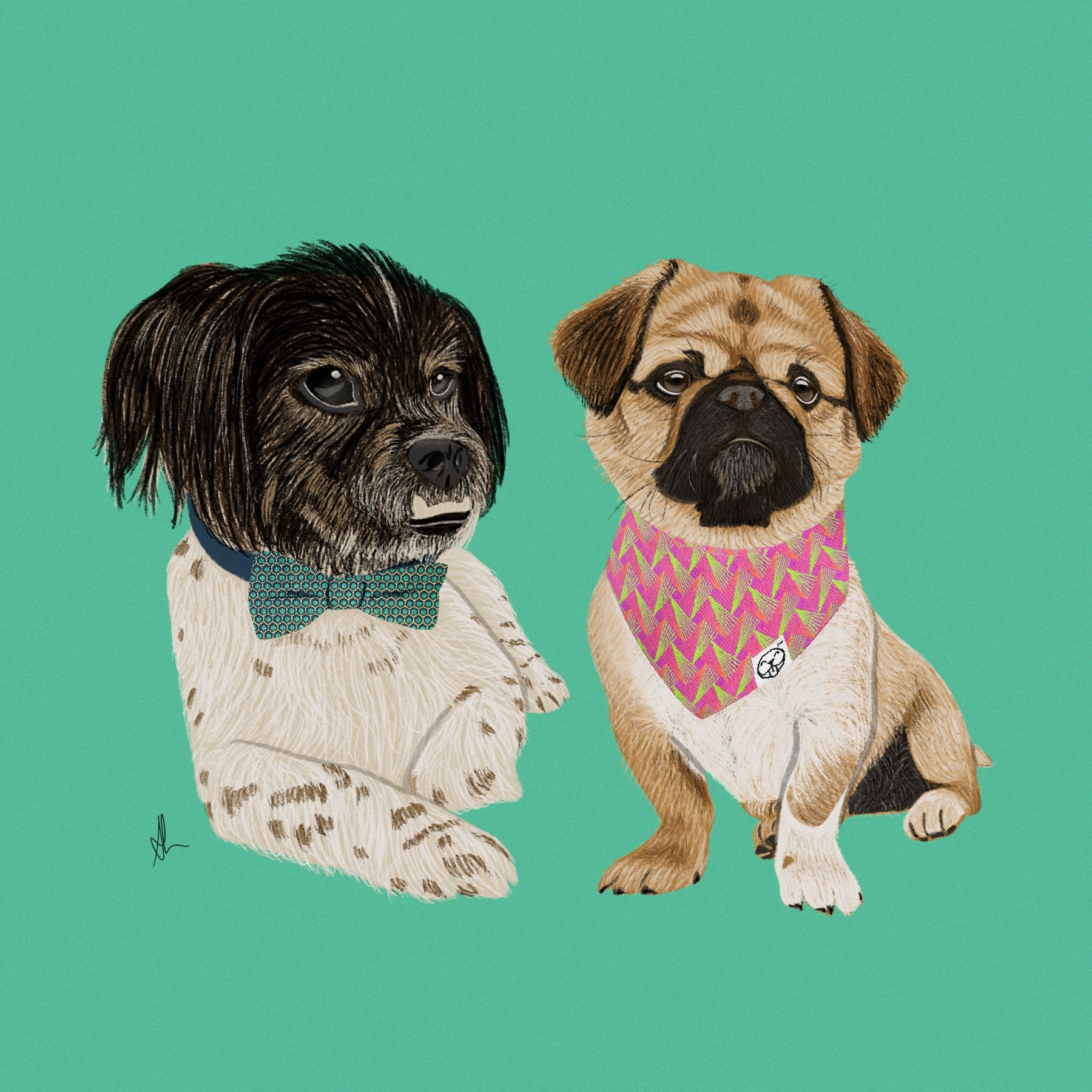 Pet portrait of Urban Hound Social mascots, Ally and Rollo.